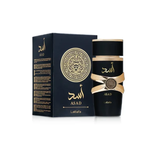 Asad de Lattafa Perfumes é um perfume Âmbar Masculino. Asad foi lançada em 2021. As notas de topo são: Pimenta Preta, Abacaxi e Tabaco. As notas de coração são: Patchouli, Café e Íris. As notas de fundo são: Baunilha, Âmbar, Benjoim, Madeira Seca e Ládano.