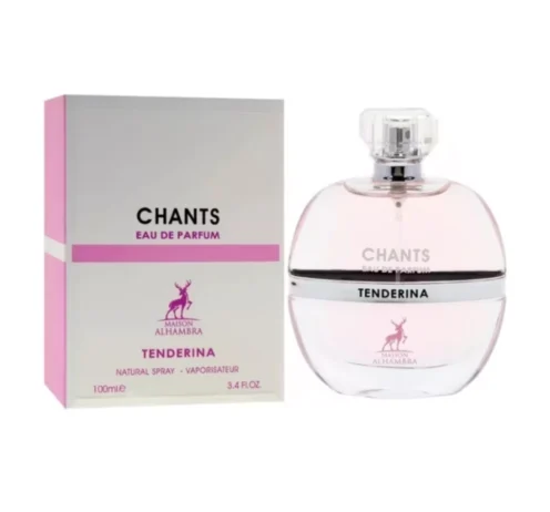 Chants Tenderina de Maison Alhambra é um perfume Floral Frutado Feminino. Chants Tenderina foi lançada em 2022. As notas de topo são: Bergamota, Flor de Toranja e Pêssego. As notas de coração são: Jasmim, Íris e Rosa. As notas de fundo são: Almíscar Branco, Vetiver, Baunilha e Patchouli.